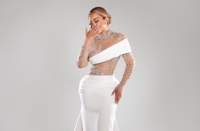 Más allá de su ejecución estética, el look destacó por su carga simbólica. El blanco del diseño evoca la luna, conectando directamente con el nombre de la artista, Indhira Luna, y construyendo una narrativa visual donde ella misma se convierte en su representación. Las transparencias bordadas con pedrería recrean el brillo lunar, reflejando esa luz propia que, como mujer, proyecta en esta nueva etapa de su vida. El escote asimétrico, que deja un hombro al descubierto, se equilibra con una manga larga transparente intervenida, abrazando su figura con intención y funcionando como un guiño al amor propio y a la fortaleza individual: la luna brilla por sí sola